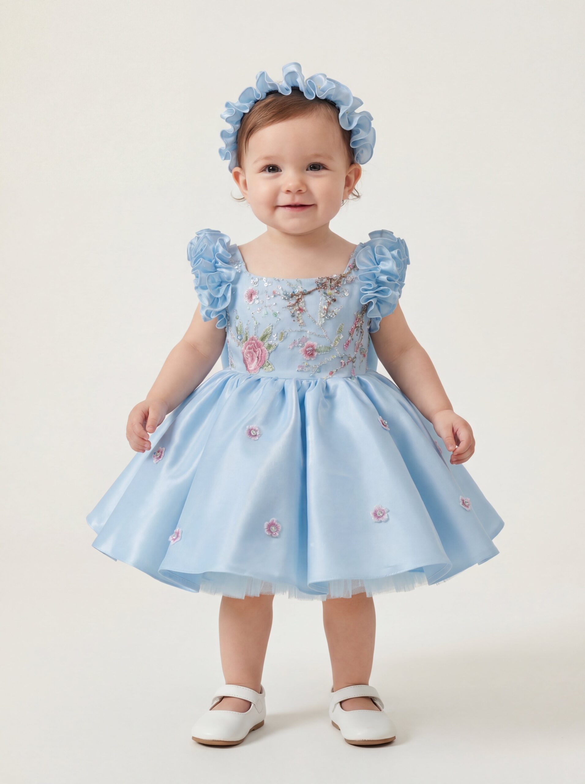Comfortable and soft kids the aurelia floral embroidered satin dress | flower girl, birthday & party gown made for kids. Perfect for daily wear with breathable fabric and child窶素riendly fit.