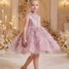 Capture the magic of childhood with a dress designed for twirling. The Seraphina combines the sparkle of starlight sequins with the whimsical softness of a feather skirt, creating a look that is purely enchanting.